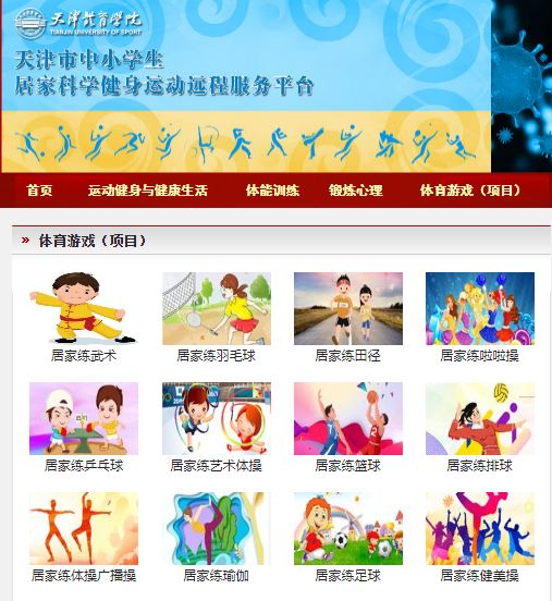 天津市中小学生居家科学健身运动远程服务平台—体育游戏(项目)