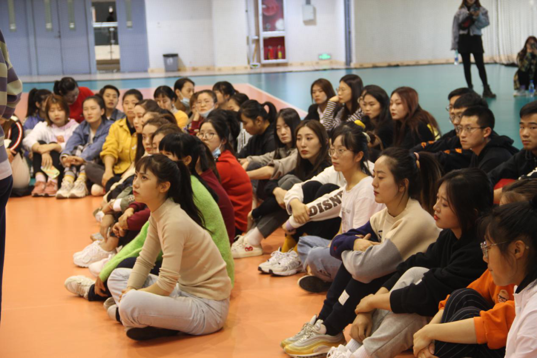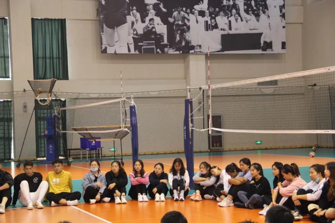致敬女排精神后,刘老师耐心的为学生们讲解排球基本的五个动作,垫球、传球、发球、扣球、拦网。同学们耐心听讲,享受着知识的洗礼。
