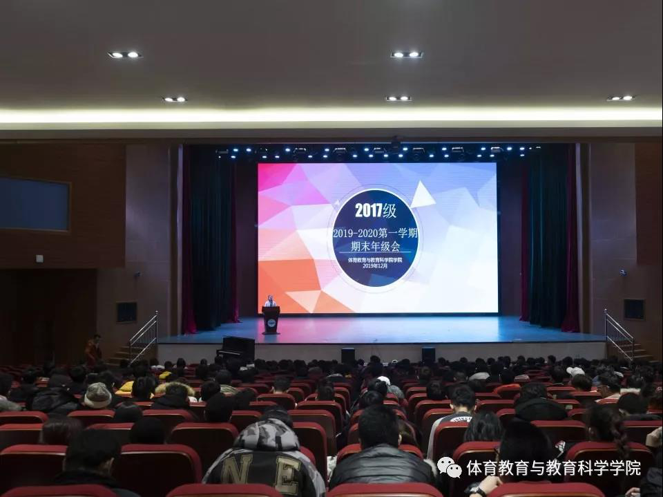 2019年12月19日、20日,按照学院领导班子统一安排部署,体育教育与教育科学学院2017级、2018级分别在教学楼A201教室和大学生活动中心礼堂召开年级大会,强调近期安全稳定及期末诚信应考等事项,院党委副书记刘泽林及相关年级辅导员参加会议。