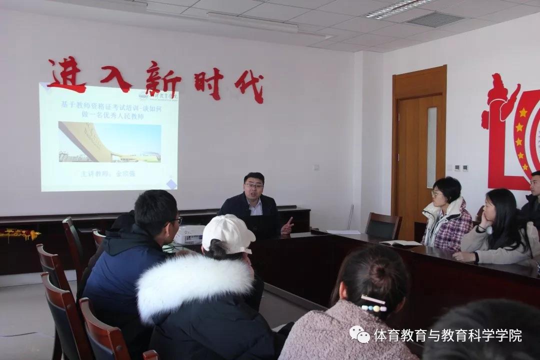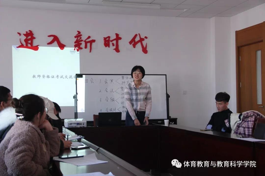 学生考取教师资格证的需求,提高学生教资通过率,体育教育与教育科学学院于2019年12月17日在特教楼507举行了教师资格证分享会。