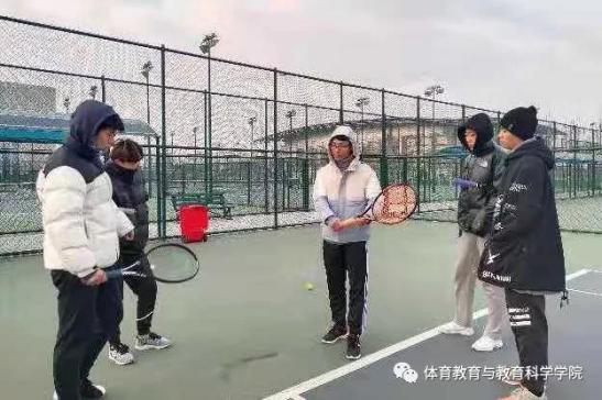 网球室外场地,天气寒冷,他们戴上帽子也不愿缺席,教练员更是贴心的准备了热身运动。