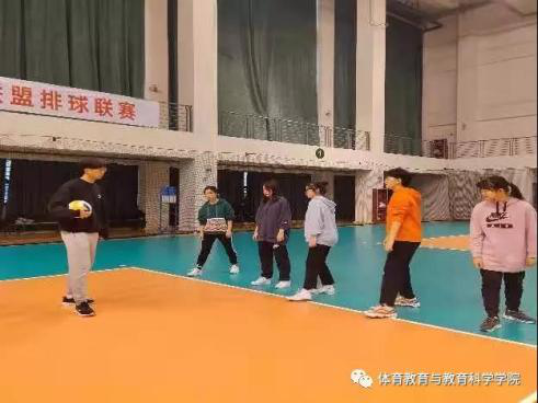 “砰砰”,是排球馆传来的声音。尽管场馆离宿舍很远,但同学们仍坚持准时准点到达。教练员耐心的从最简单的动作教起,为同学们提高技术水平打下坚实的基础。