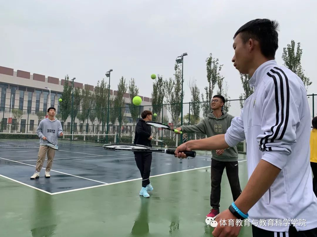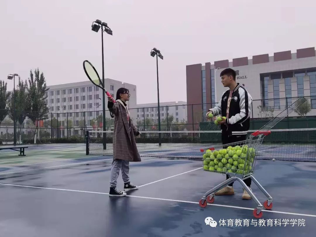 网球——下雨也不能阻挡练球的脚步!一个个绿色的网球被用力的打出去,在空中转个圈,跌落,弹起。教练手中拿着网球,单独给同学们做指导。看我们学员认真的眼神,也很是可爱呢。