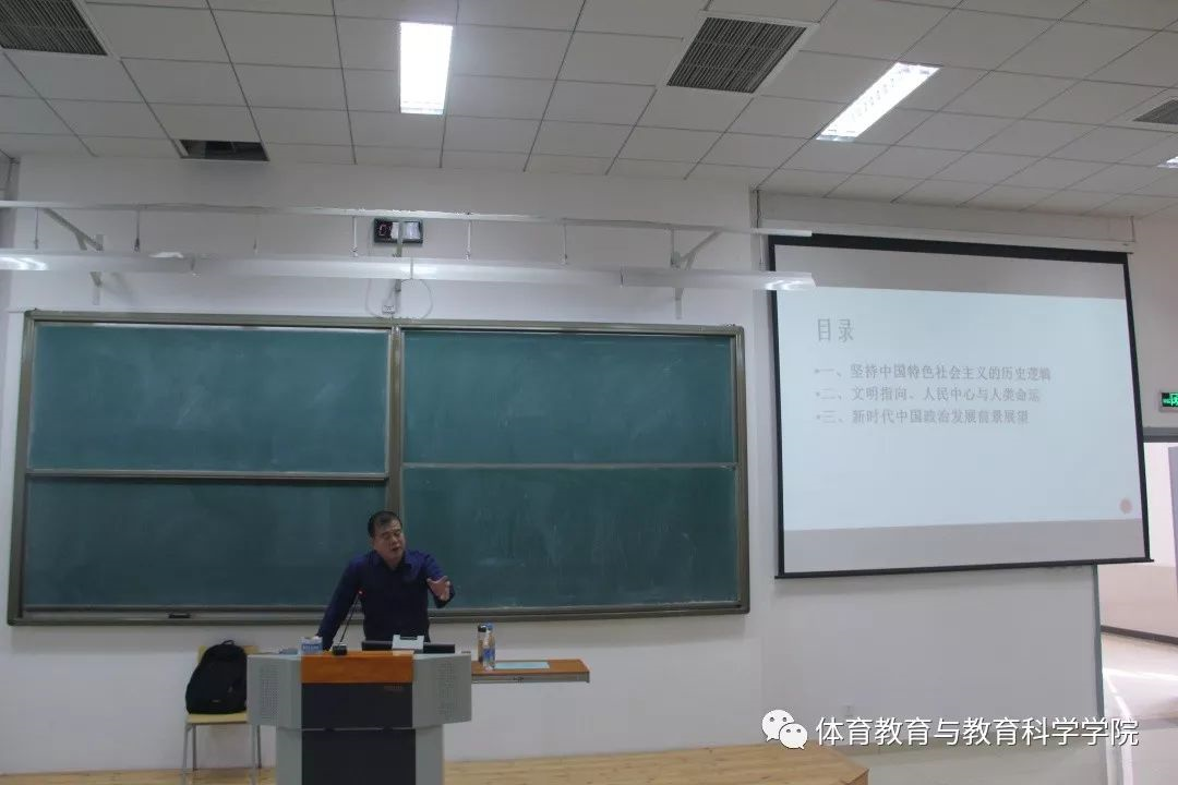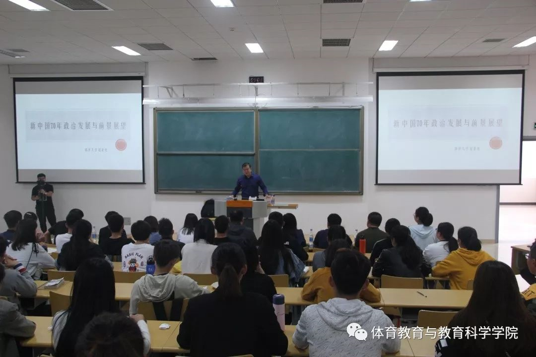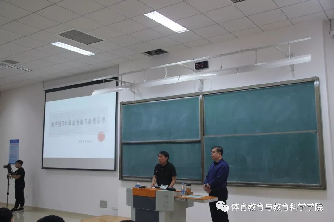 9月27日上午,体育教育与教育科学学院研究生新生养成计划讲座之“我与祖国共成长”新中国成立70周年报告会在教学楼B214举行,天津思政课教授宣讲团成员、南开大学马克思主义学院纪亚光教授来肉视频