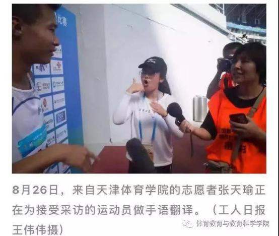 在经历了一次残运会后,收获可以说是很多。我能够看到他们在赛场中顽强拼搏的精神,我同时也学习和领会到这种精神所带来的感染力。在网球赛场上我还记得一位四川队的运动员,在比赛中途腰肌劳损突发,在医疗人员的帮助下进行五分钟缓解后,依旧坚持打完整场比赛。在田径赛场的听障男子一万米项目中,很多运动员在中途因体力透支而选择放弃了比赛,但是有一位即使是最后一名,也选择坚持跑完全程。另外,我能够真切的感受到自己价值的存在,同时我觉得自己的手语能力又有了一次提升,手语其实存在着地域方言问题,不同地方的人其实使用不同的手语,所以在有限的时间里要看懂采访的每位运动员实际很难,所以需要在采访的时候和他们多沟通多确认,以免传达错误的信息。因为对特教对手语的热爱,让我有机会接触残运会成为一名志愿者,也更是因为这份热爱我从中收获到了从未感受过的体验。