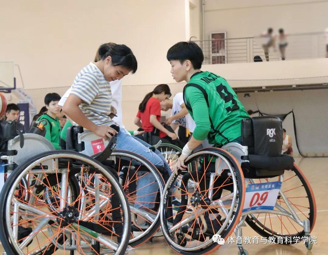 为了培养未来合格的体育教师和特教教师,体育教育与教育科学学院和马克思主义学院注重在各类实践活动中让同学们感受和体会思政教育的润物无声。此次活动借助了天津残奥会和特奥会的有利契机,邀请广东轮椅篮球女队现役国家轮椅篮球女队教练员陈琦携队员及广东轮椅篮球男队于8月30日上午来到天津体院,教练员和队员们用实际行动为体教和特教专业的学生上了生动的一课。校党委副书记、校长吉承恕,体育教育与教育科学学院党委书记马桂霞,院党委副书记刘泽林,马克思主义学院的刘秀英老师,体教杨巧静、肖翔老师及特教专业老师出席了活动。