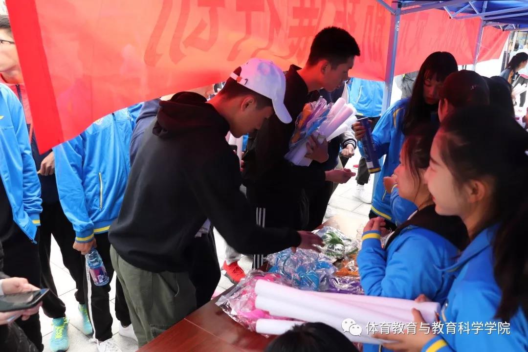 下午4点半,参赛者陆续在大学生活动中心前有秩序地领取荧光夜跑装备。