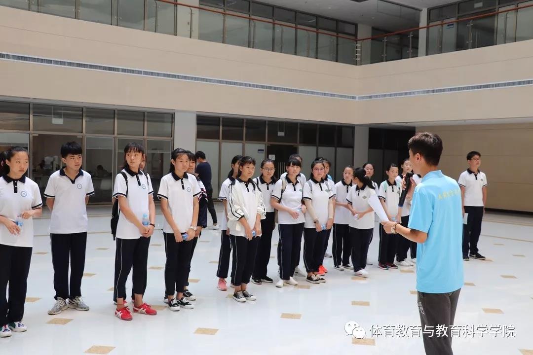 开营仪式结束后,由志愿者带领营员参观了校园,走进了图书馆、体育馆、篮球馆、足球场、网球场、社体实训楼、教学楼等现代化体育场馆,并担任解说员讲解肉视频
