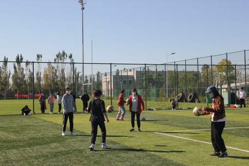 绿茵点亮梦想,激情舞动青春,为营造一个积极、健康、活泼的校园环境,提高体育教育与教育科学学院学生全面素质,促进师生交流,2021年10月11日体育教育与教育科学学院在足球场举办“以球会友,逐梦天体”为主题的师生共建活动,本次活动特别邀请体育教育与教育科学学院副教授、足篮排教研室主任王炜华老师,带领20级、2021级研究生们体会足球运动的魅力。学院团委书记、学生工作办公室主任张明老师和辅导员孙志文老师出席。