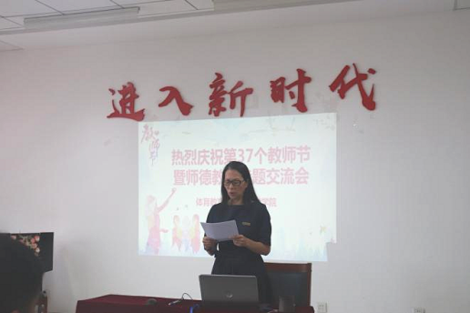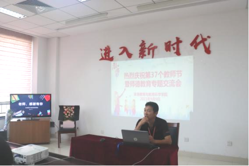 赓续百年初心,担当育人使命。在第37个教师节来临之际,为进一步加强师德师风建设,切实提高教师职业道德素养,打造一支思想素质好、业务水平高、团队精神硬、奉献精神强、师德师风优的教师队伍,2021年9月9日下午,体育教育与教育科学学院在特教楼507会议室召开热烈庆祝第37个教师节暨师德教育专题交流会,学院全体教职工参会,交流会由学院党委书记马桂霞主持。