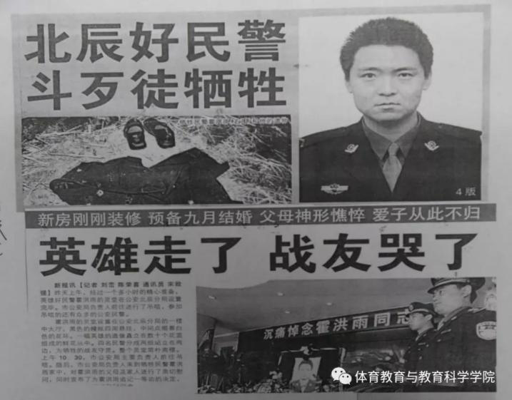 广为流传,成为广大师生学习的榜样。体育教育与教育科学学院为弘扬烈士精神,创编了《新时代的人民英雄霍洪雨》话剧。