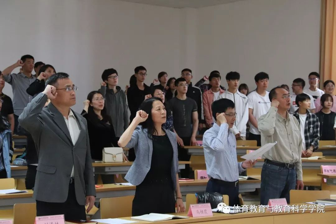 5月5日中午13时,体育教育与教育科学学院全体教师在教学楼A201召开师德师风建设誓师动员大会,对师德师风建设的活动进行任务布置、签署师德承诺书和宣誓。会议由院长孙延林主持,学院领导班子成员,办公室成员、辅导员、全体教师和部分优秀学生代表参加。