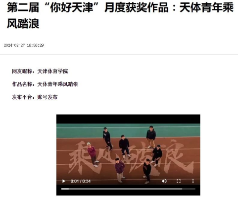 日前,第二届“你好,天津”网络短视频大赛第七个月赛评选结果揭晓,我院新媒体作品《天体青年乘风踏浪》入围月度优秀作品。
