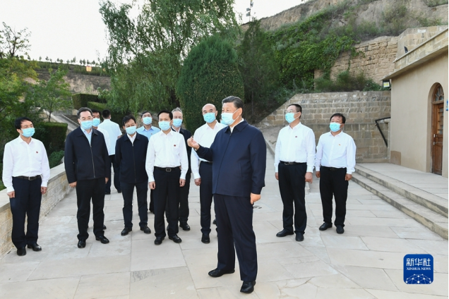 9月13日至14日,中共中央总书记、国家主席、中央军委主席习近平在陕西省榆林市考察。这是13日下午,习近平在米脂县杨家沟革命旧址考察。新华社记者 谢环驰 摄