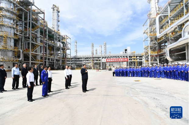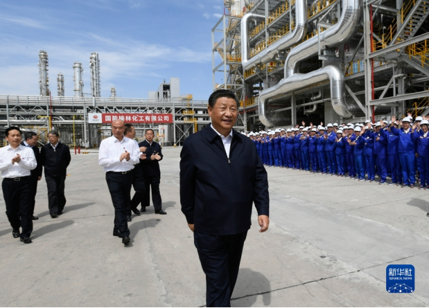 9月13日至14日,中共中央总书记、国家主席、中央军委主席习近平在陕西省榆林市考察。这是13日上午,习近平在国家能源集团榆林化工有限公司年产40万吨乙二醇项目现场考察。新华社记者 李学仁 摄