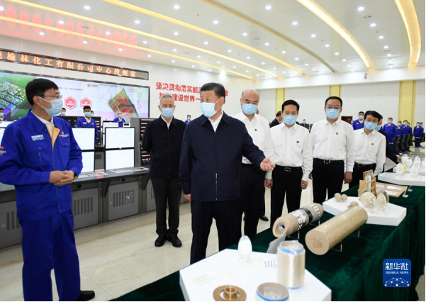 13日上午,习近平首先来到国家能源集团榆林化工有限公司,了解循环经济煤炭综合利用项目规划建设运行情况。在中心控制室,习近平观看项目产品展示,对企业坚持创新发展,坚持安全、稳定、清洁运行的做法表示肯定。随后,习近平到年产40万吨乙二醇项目现场察看,询问煤化工深度发展有关情况,同企业职工代表亲切交流。他强调,榆林是国家重要能源基地,为国家经济社会发展作出了重要贡献。煤炭作为我国主体能源,要按照绿色低碳的发展方向,对标实现碳达峰、碳中和目标任务,立足国情、控制总量、兜住底线,有序减量替代,推进煤炭消费转型升级。煤化工产业潜力巨大、大有前途,要提高煤炭作为化工原料的综合利用效能,促进煤化工产业高端化、多元化、低碳化发展,把加强科技创新作为最紧迫任务,加快关键核心技术攻关,积极发展煤基特种燃料、煤基生物可降解材料等。