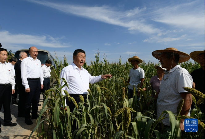 13日下午,习近平前往米脂县银州街道高西沟村考察调研。山谷间果园、林地、梯田、淤地坝错落有致,初秋的黄土高原一片绿意盎然。途中,习近平临时下车走进田间,察看谷子、糜子、玉米长势,同正在田间劳作的老乡拉家常,询问他们生产经营、家庭收入、医疗保障、子女上学就业等情况。在高西沟村龙头山山顶,习近平听取了陕西省生态文明建设和高西沟村探索黄土丘陵沟壑区综合治理情况介绍。习近平指出,高西沟村是黄土高原生态治理的一个样板,你们坚持不懈开展生态文明建设、与时俱进发展农村事业,路子走的是对的。要深入贯彻绿水青山就是金山银山的理念,把生态治理和发展特色产业有机结合起来,走出一条生态和经济协调发展、人与自然和谐共生之路。