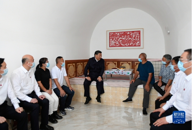 9月13日至14日,中共中央总书记、国家主席、中央军委主席习近平在陕西省榆林市考察。这是14日下午,习近平在绥德县张家砭镇郝家桥村,看望村民侯志荣一家。新华社记者 李学仁 摄