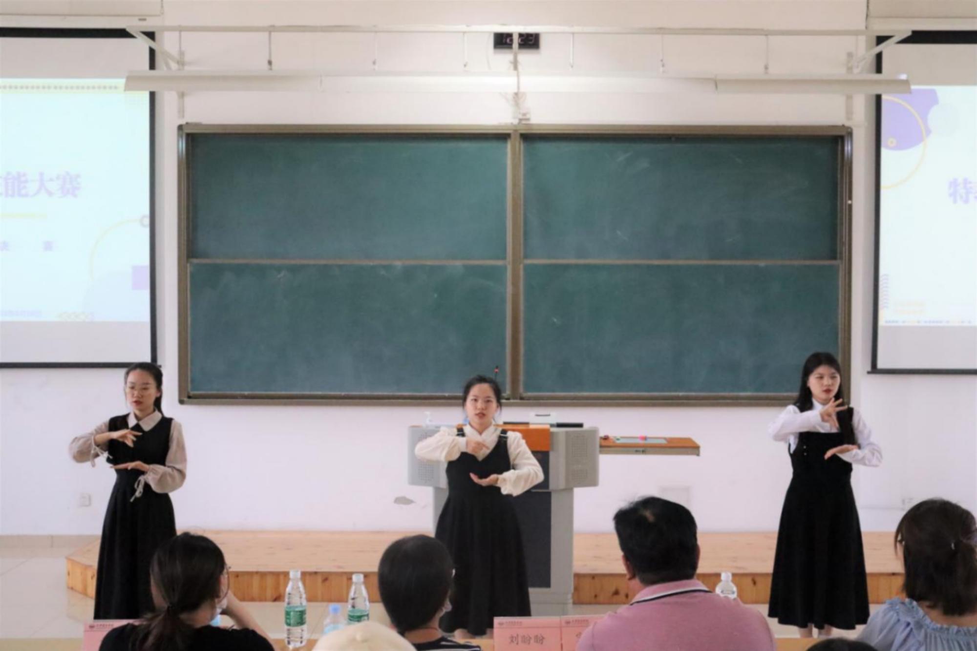 特殊教育专业2018级六名学生选手入围试讲决赛,比赛分为上、下两个半场,每个半场都有三名选手分别进行生活语文、生活数学、生活适应科目的试讲授课,每一位参赛选手试讲结束,四位评委老师针对选手的表现进行客观评分与现场点评。中场休息由特教2019级三名学生带来热场舞蹈及牵手社三名学生带来手语歌曲表演《云烟成雨》。