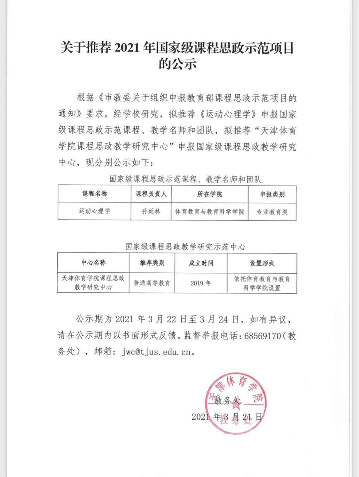 【公示】关于推荐2021年国家级课程思政示范项目的公示
