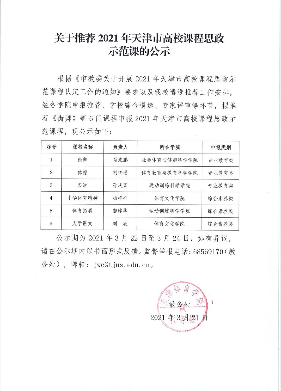 【公示】关于推荐2021年天津市高校课程思政示范课的公示