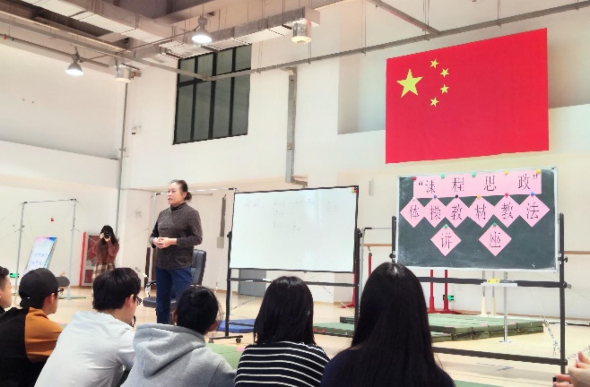 《体操》课程思政课题组邀请了体操世界冠军范晔在大学生活动中心做了体育精神的宣讲,鼓励学生要有自己的理想并激励学生应朝着自己的目标勇敢前行。同时,聘请资深体操专家张玉珠老师作了“课程思政”体操教材教法系列讲座。讲述了如何将“高校思想政治教育融入体操课程教学和改革的各环节、各方面,贯穿教学课程目标、课程主体内容和课程拓展活动之中”,真正实现立德树人润物无声的教学目标。