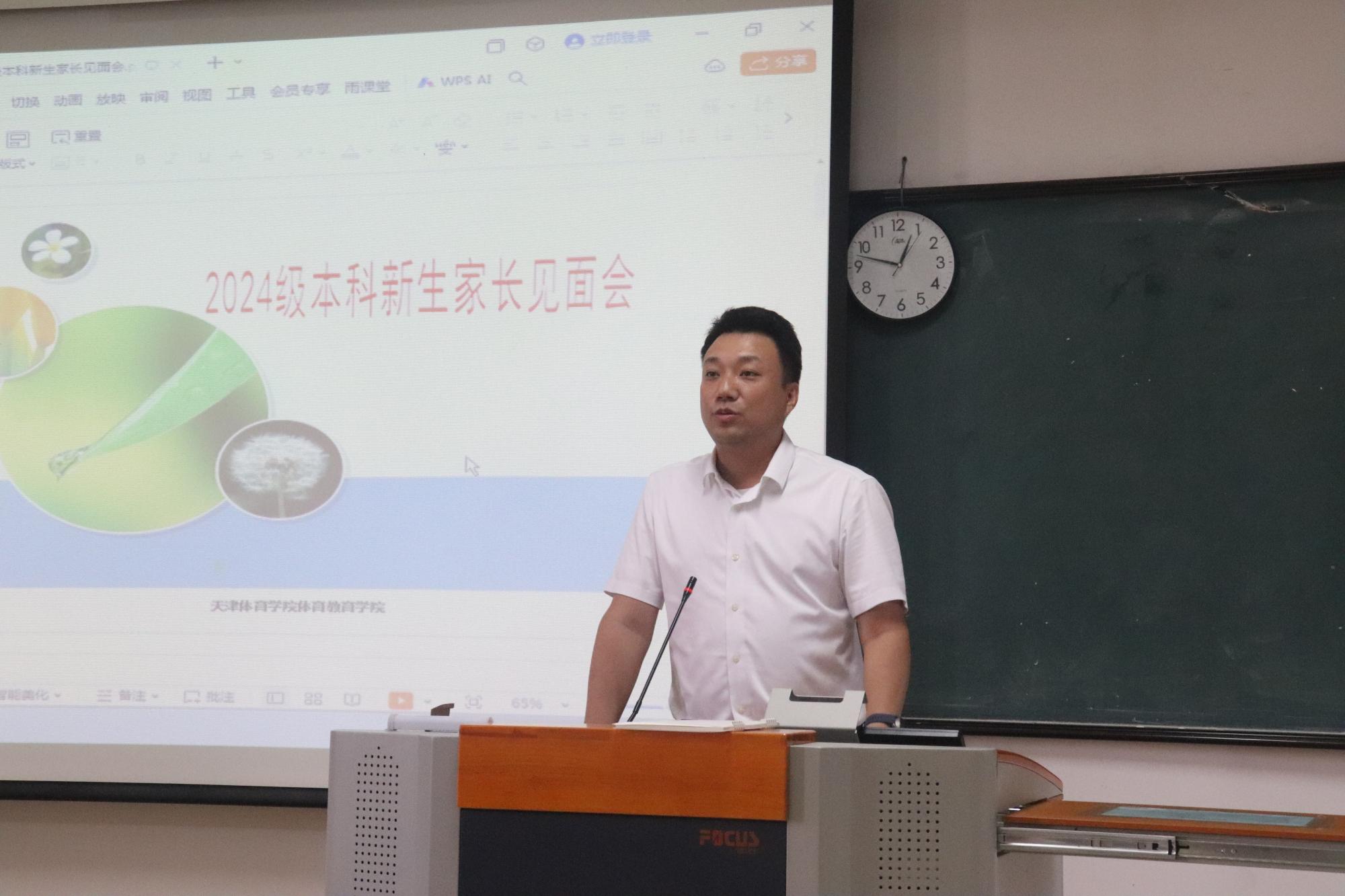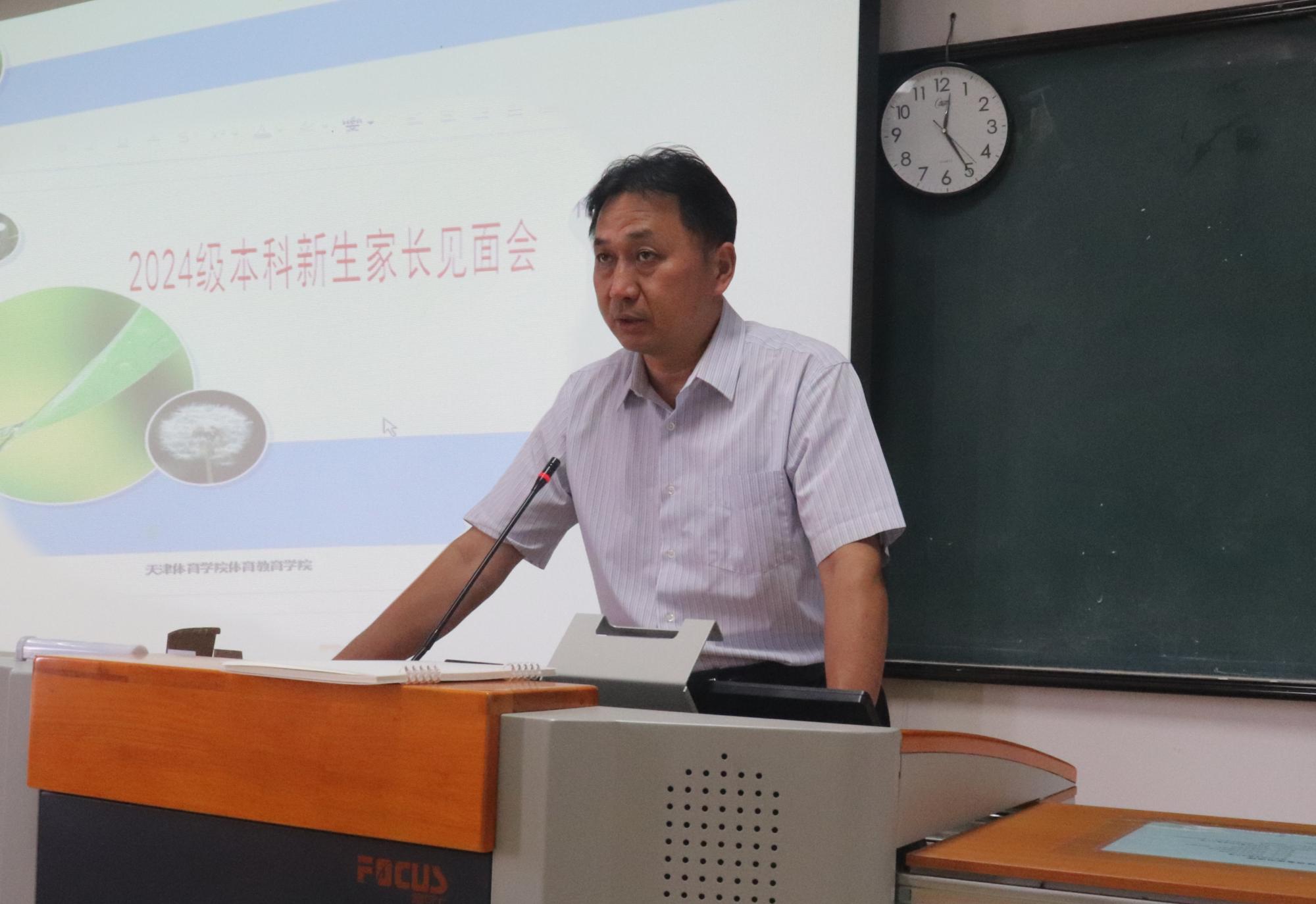 院长叶加宝对各位家长的到来表示热烈欢迎,他介绍了学院的历史沿革、师资力量、专业设置和人才培养特色。叶加宝分析了体育专业人才发展的趋势和就业市场的变化,强调了肉视频 办学定位和“以学生为中心”的教育理念,围绕职业规划、校园生活、心理健康等与家长进行深入交流